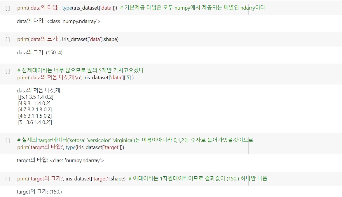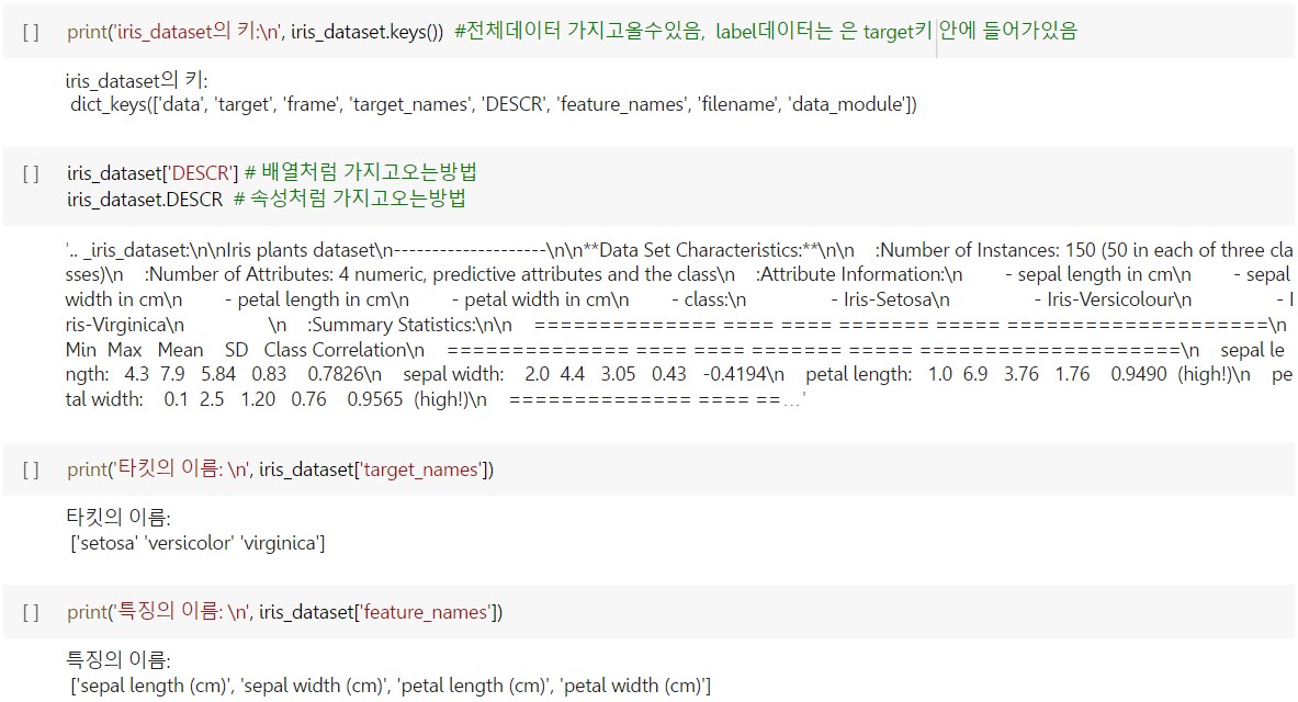 - 레이블 : 특정 데이터 포인트에대한 출력( = 품종 )