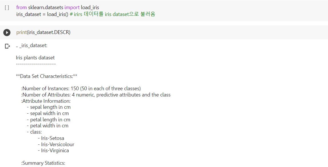 - 클래스 : 출력될수있는 값 ( = 3개 붓꽃의 종류 )
