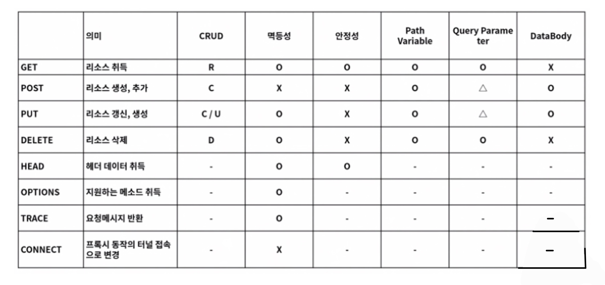 멱등성 : 몇번의 요청을 해도 같은 응답이 내려옴