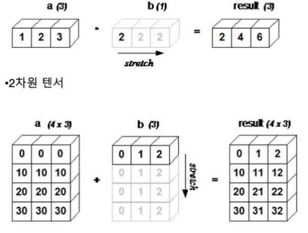 - 넘파이에서 다른 형상(shape, 차원)끼리 계산 가능