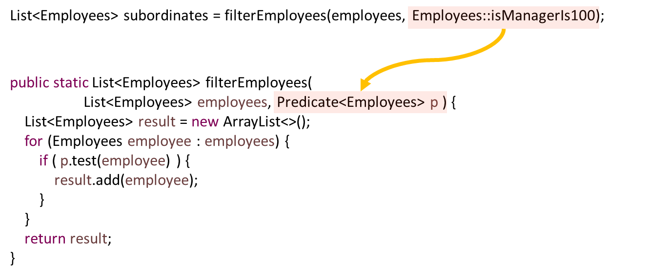 Employees에 있는 isManager 메소드 : 이코드는 이후 JVM에서 람다형식으로 바뀌어서 전달됨