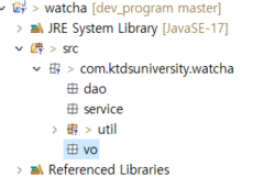 - vo 패키지 : 데이터클래스만 들어감 value object = 데이터만 가지고있는 객체
