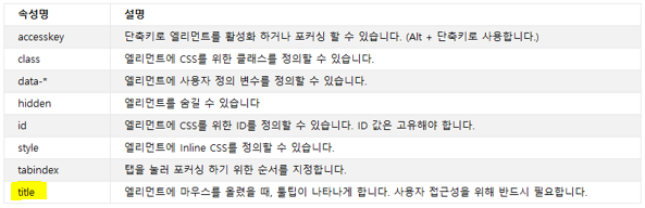 HTML의 주요 공통 속성 : 모든 태그들에 쓸 수 있음 (=Global Attributes)