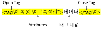 1. 태그는 Open Tag / Attributes / 태그내용 / Close Tag 로 구성되어있음 (text안에 태그 더 들어갈 수 있음)