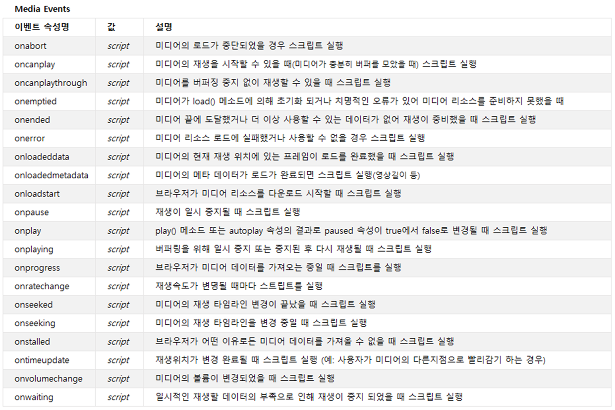 - 유트브가 이 media events를 다 사용하여 구현했다고 보면됨
