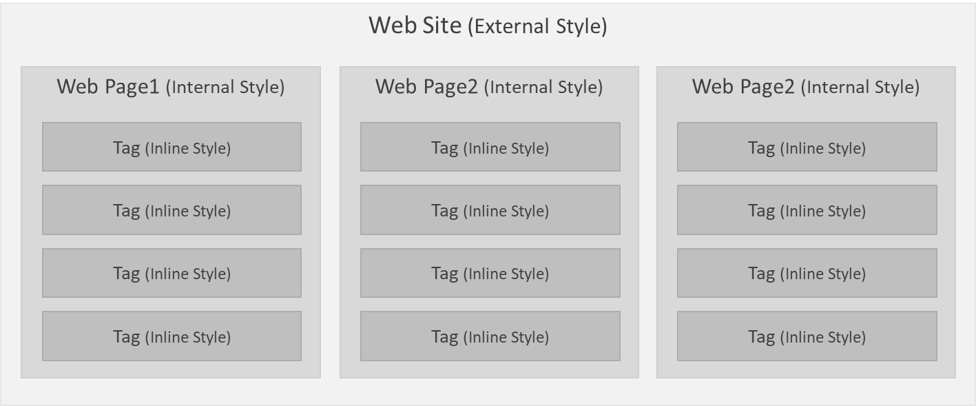 한 페이지의 레이아웃만 적용할 수 있음-> html안에서 정의한 'style'만 이용해서 만든것