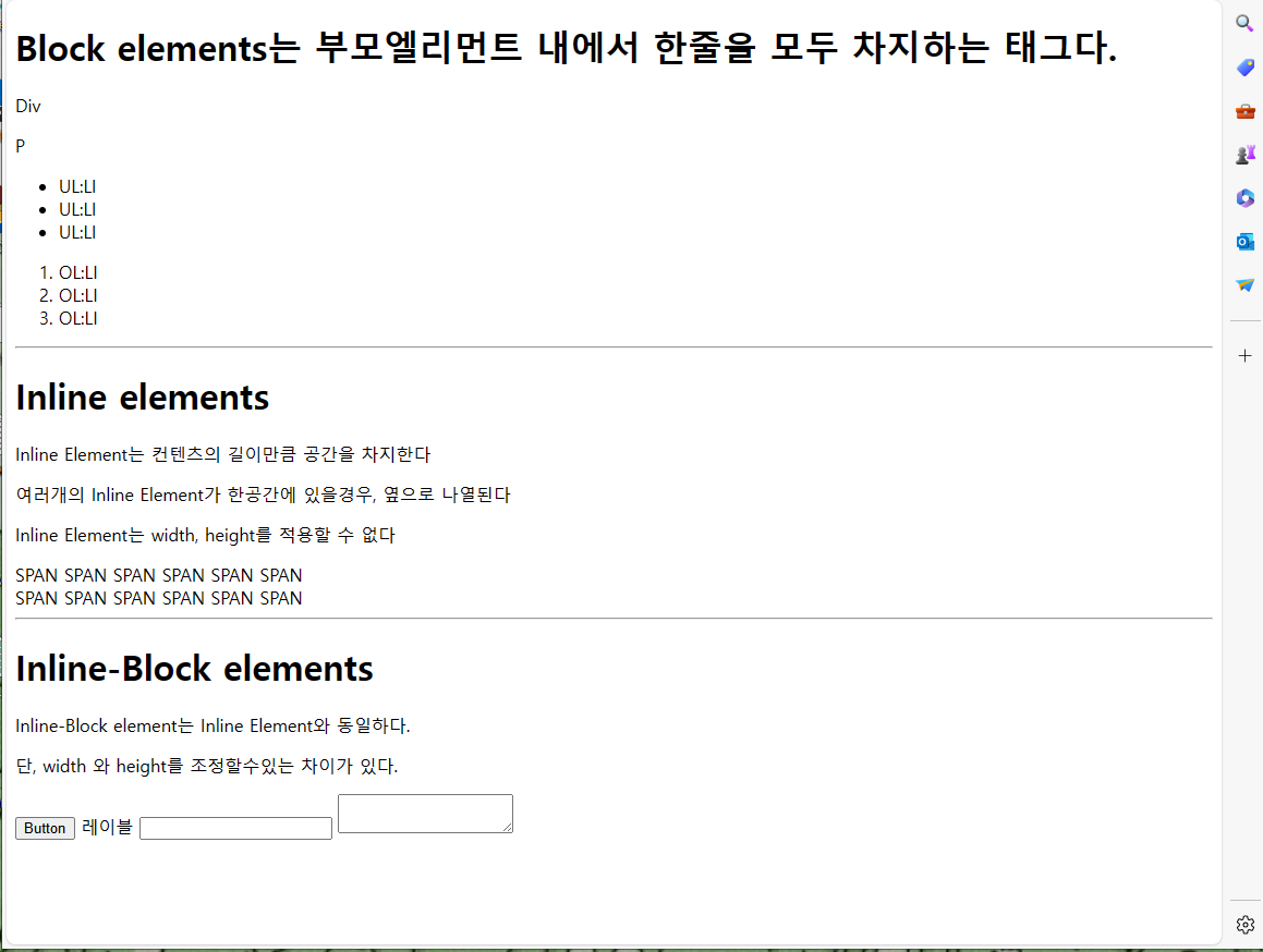 <p>Inline-Block element는 Inline Element와 동일하다.</p>