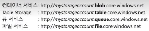 - 모든 개체에는 계정이름과 스토리지 유형에따른 고유한 URL 주소가 있다.