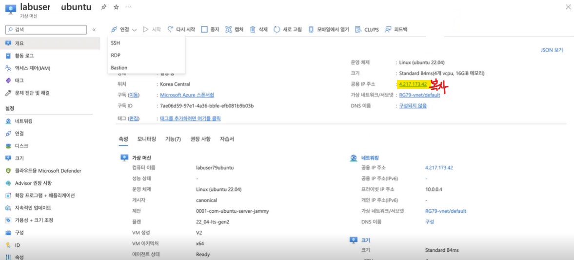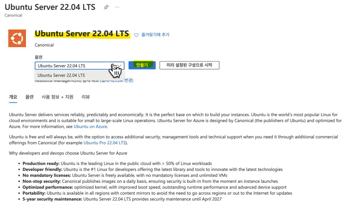 1. azure-market place에서 Ubuntu server 22.04 LTS 설치한다