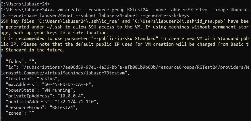 az vm create --resource-group RGTest24 --name labuser79testvm --image UbuntuLTS --vnet-name labuser24vnet --subnet labuser24subnet --generate-ssh-keys -> 키도 같이 만드는것