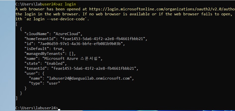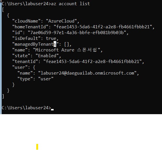 az group delete --name RGTest24 --yes ( --yes 기능 = 앞으로나오는 yes에 다 yes로 할것임을 의미)