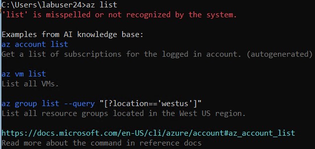 az network vnet create --name labuser24vnet --resource-group RGTest24 --subnet-name labuser24subnet --address-prefixes 10.0.0.0/16 --subnet-prefixes 10.0.0.0/24