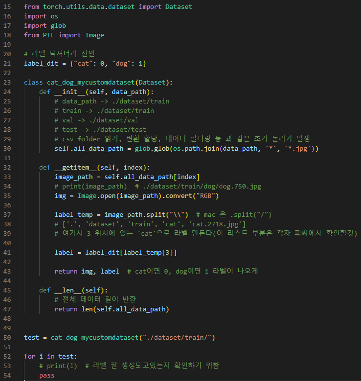 - __init__()함수 : csv or 이미지 읽기, 변환할당, 데이터 필터링등 초기논리발생하는곳 (=초기화 해주는 곳이다.)