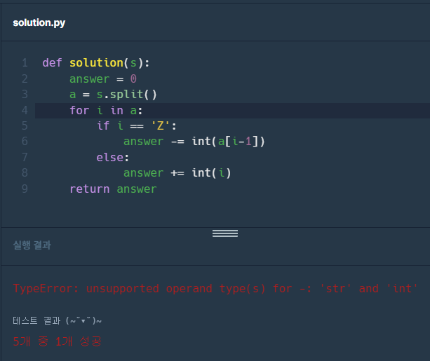 -> 문자열 s가 split되어 만들어진 리스트a 를 for문으로 돌릴때, range() 사용하여 리스트a 길이만큼 사용하게 해야한다