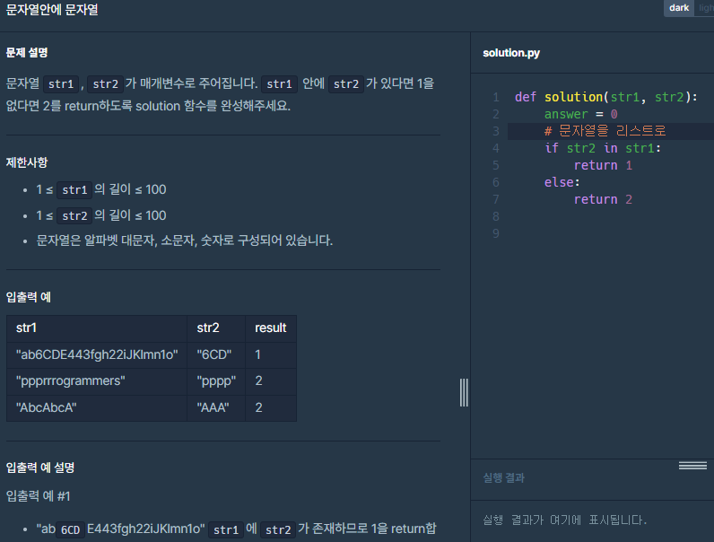 프로그래머스 코딩테스트입문 - 편지, 문자열안에 문자열 본문
