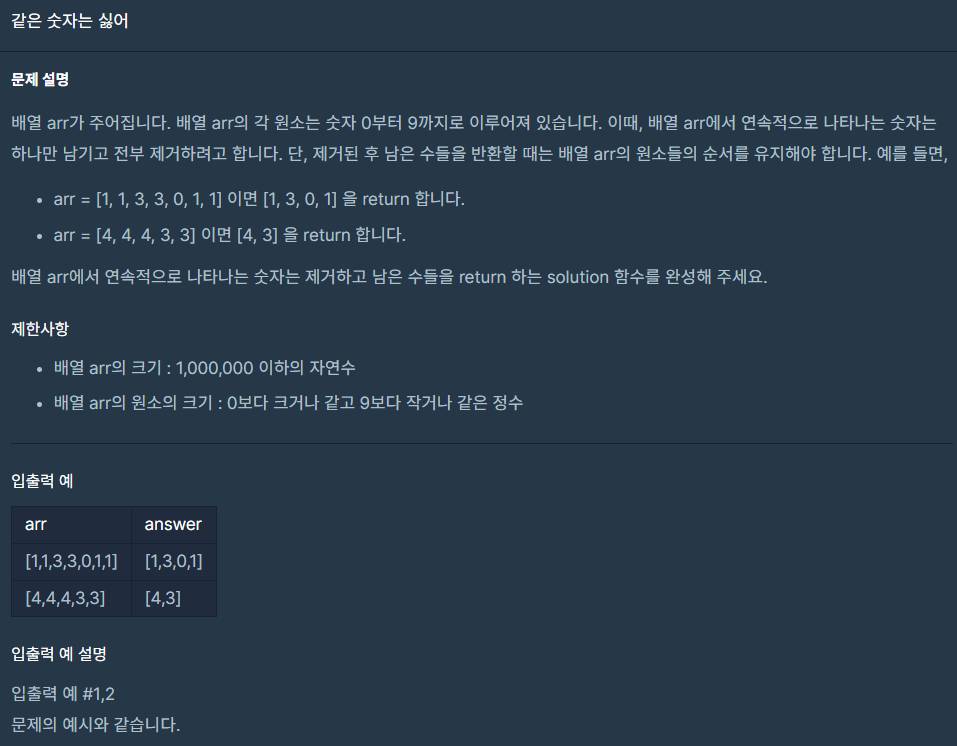 [스택/큐] 1.같은 숫자는 싫어 본문