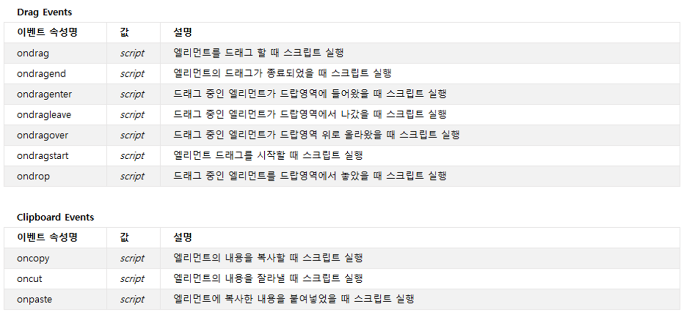 - onbeforeunload / onunload : 보안문제로 이제는 사용하지않음