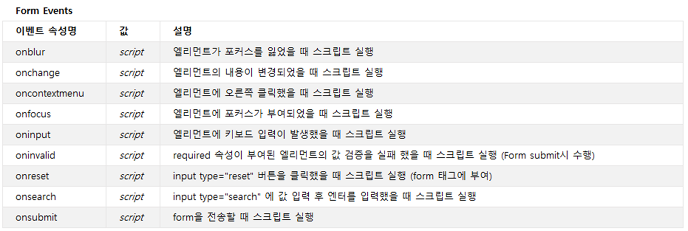 - onblur : 포커스를 가지고있다가 포커스를 잃을때